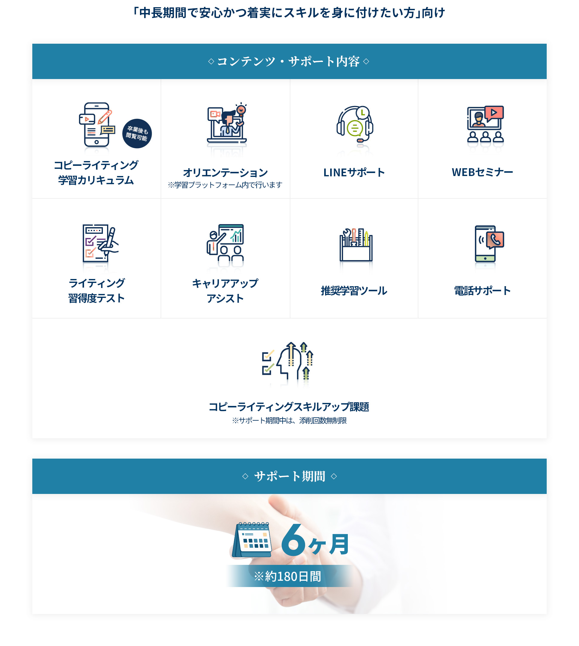 サービス利用契約は、サービス利用契約成立後、ユーザーが申込時に選択し、別途当社が定める受講期間の満了日までの間、当社とユーザーとの間で有効に存続するものとします。