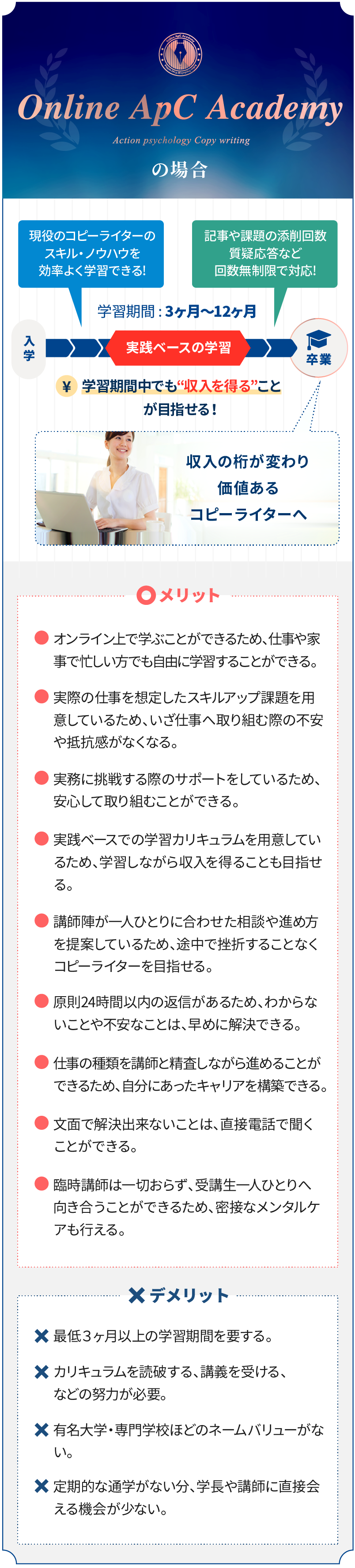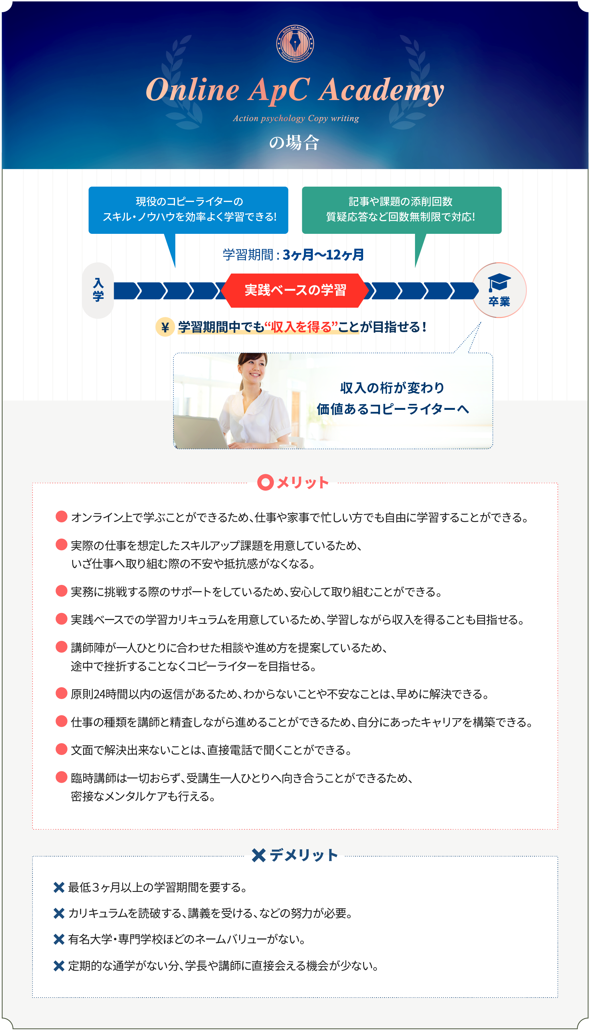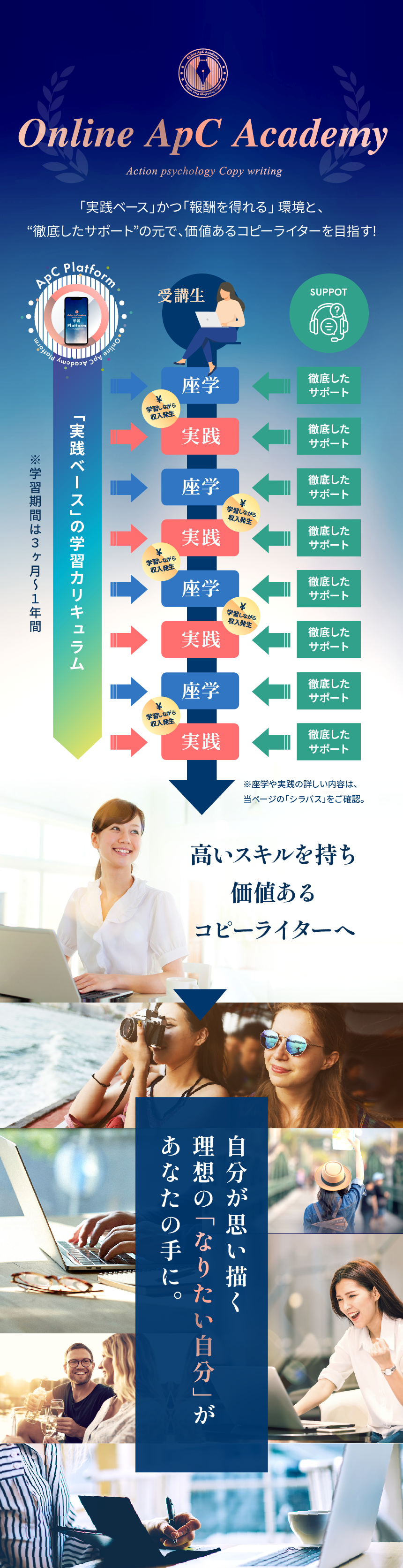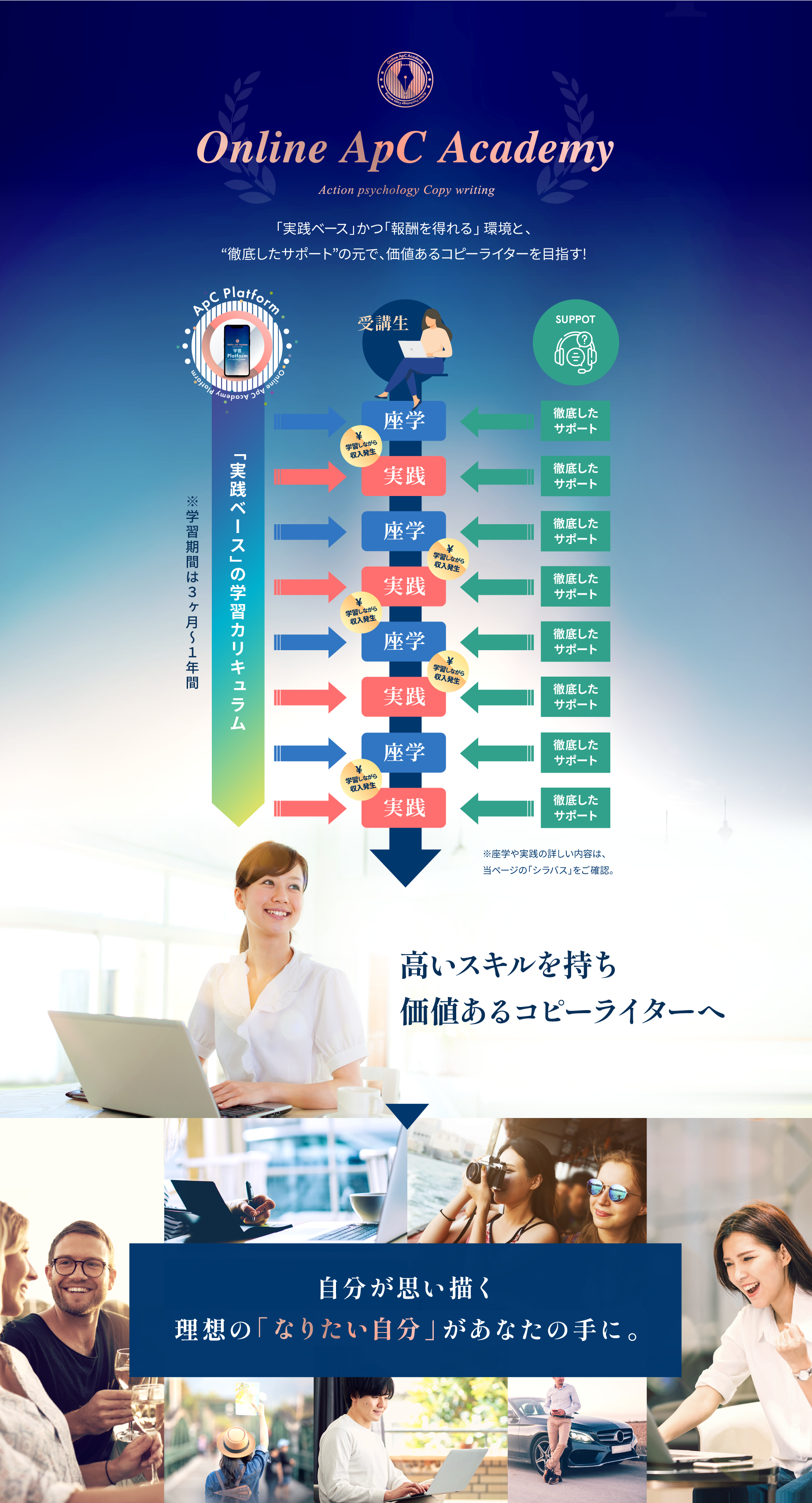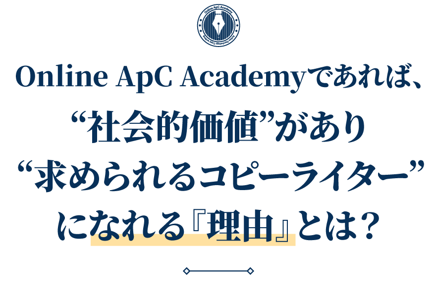 当社が提供する「Online ApC Academy」という名称のコピーライター養成オンラインスクール(理由の如何を問わず、その名称又は内容が変更された場合の当該変更後のサービスを含みます。)及び当社所定の関連ソフトウェアをいいます。