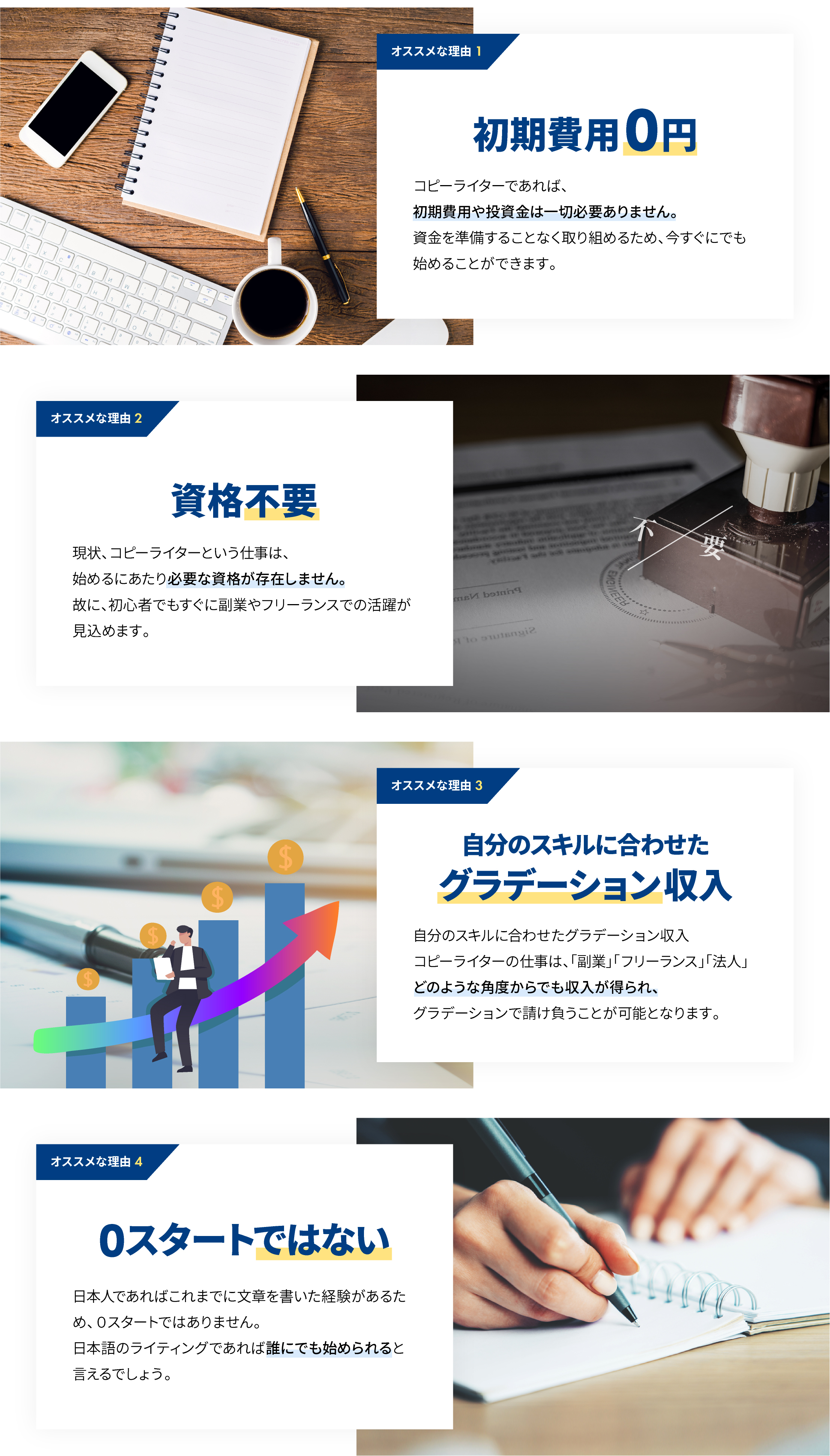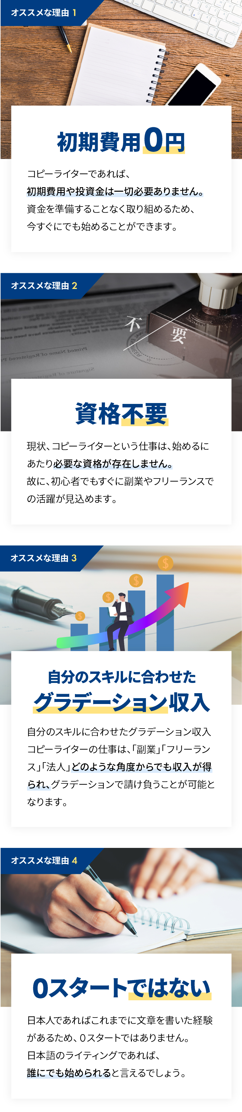 過去に文章を書いた経験さえあれば、そこに無料トライアルでお渡しする専門知識を落とし込むだけで、どなたでもコピーライターになることができます。