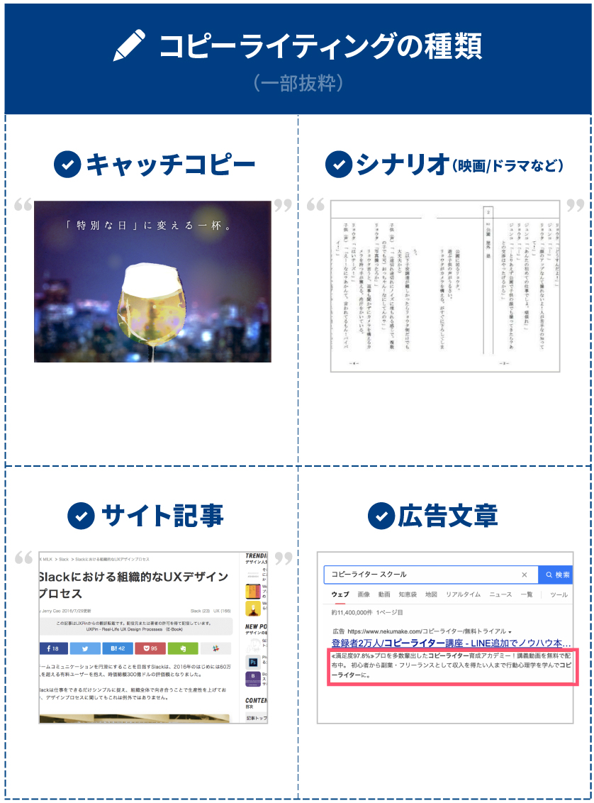 それぞれコピーライターの実態は以下の通りです。