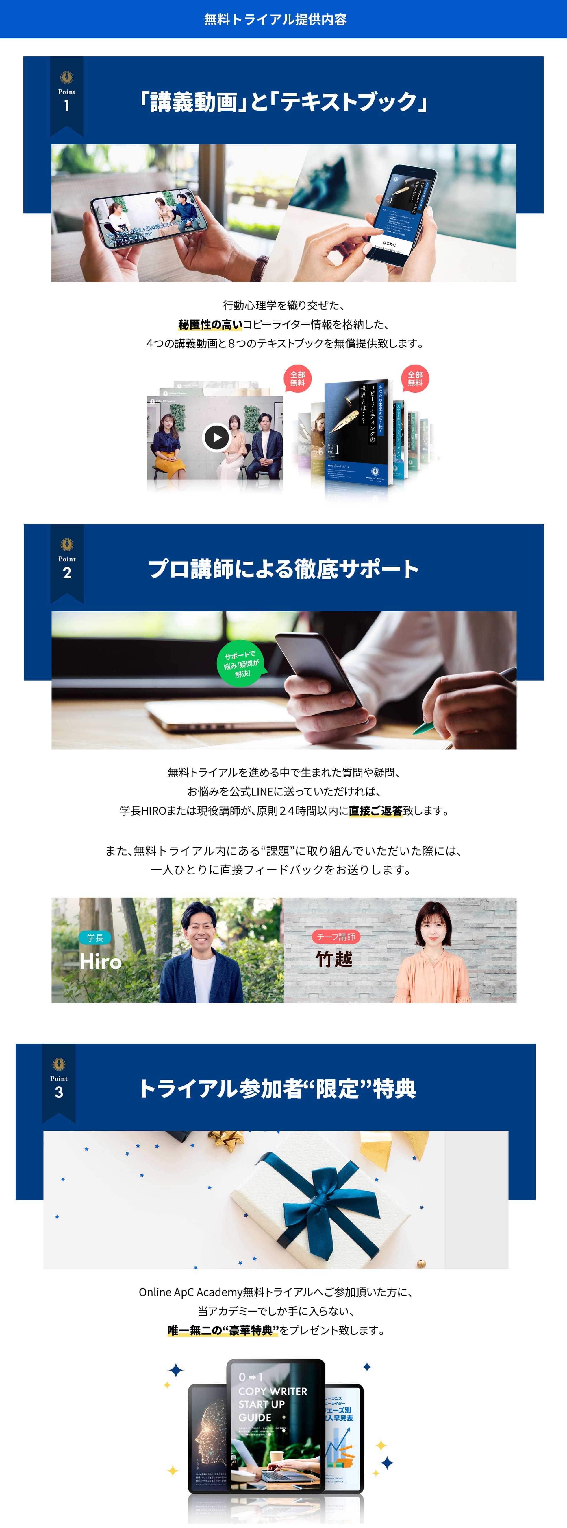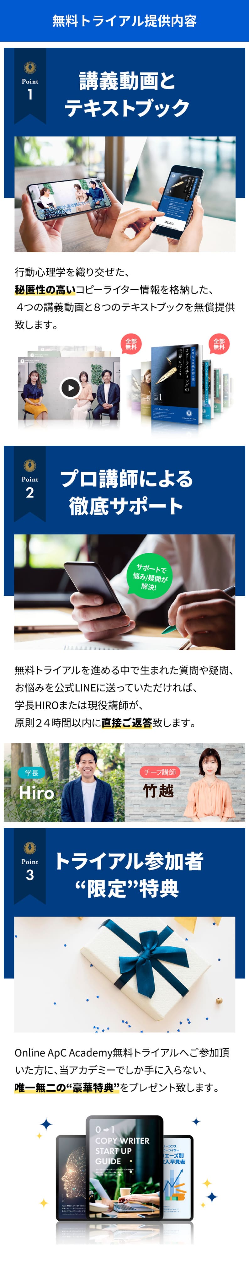 各コンテンツに関しては、無料トライアル参加後に順番にお届けする形となります。