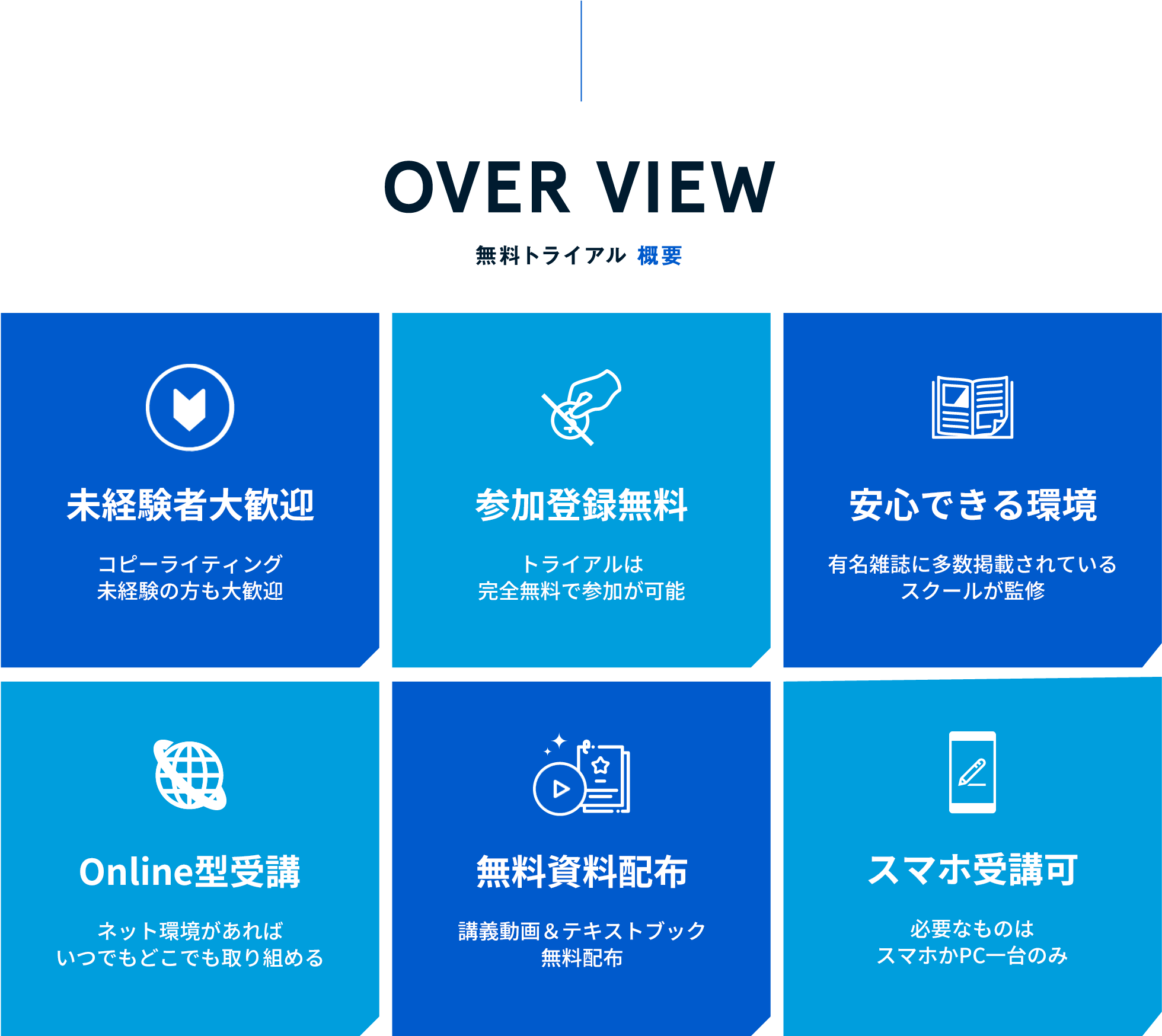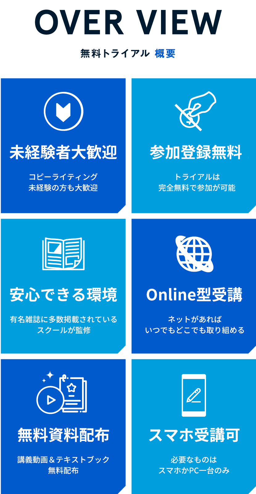 いえ、ありません。通学やセミナー参加は一切必要としないため、ご自宅やカフェ、地方や海外からでも無料トライアルにご参加いただけます。